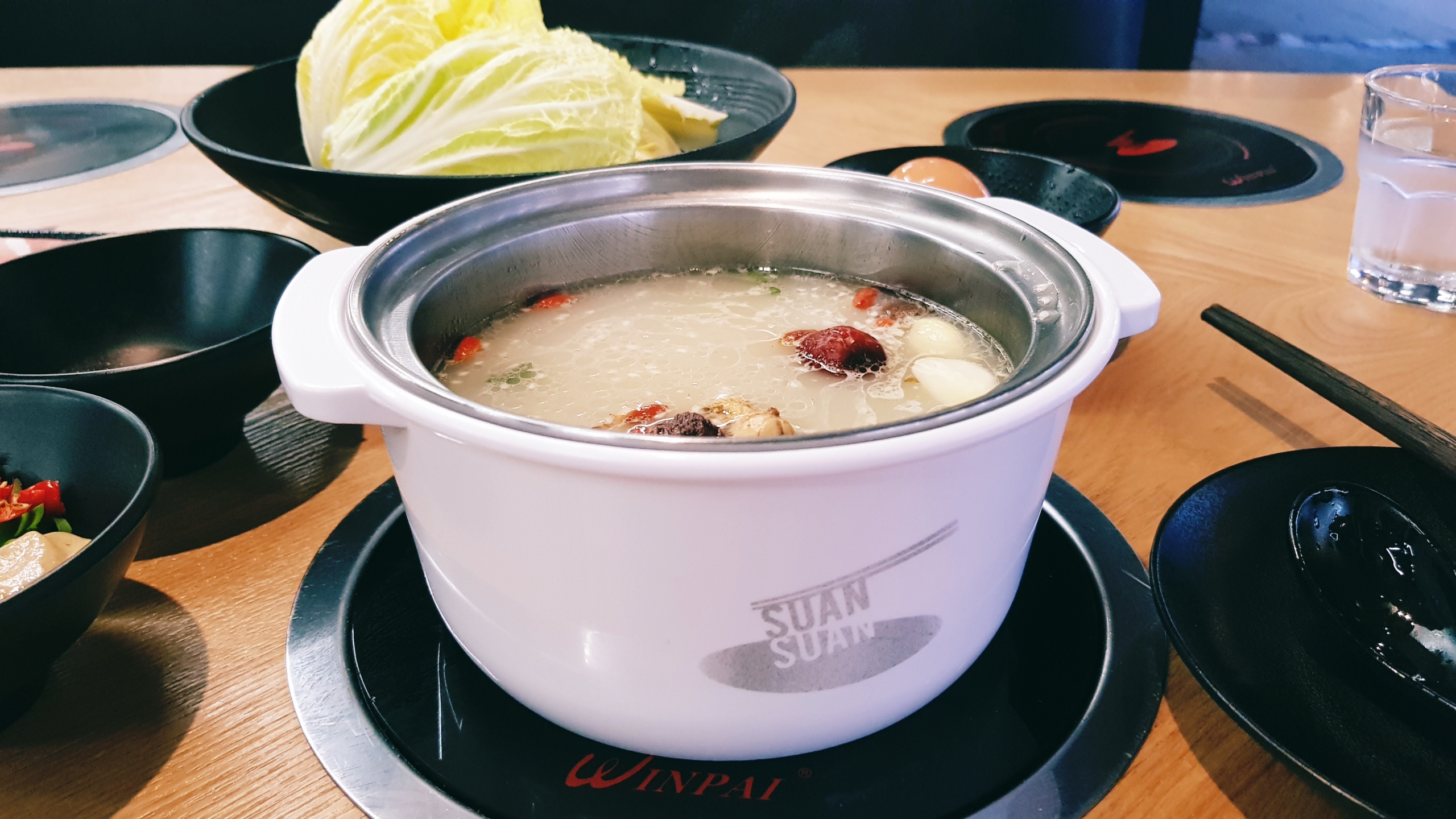 ครั้งแรกของการกิน Hot pot สไตล์จีน ตอนแรกรู้สึกไม่ค่อยต่างกับร้านสุกี้บ้านเราเท่าไรเลย… แต่ความแตกต่างมันคือน้ำซุปของที่นี้จะมีให้เลือก 5 แบบ คือ 1. ซุปรสดั้งเดิมผสมสมุนไพรจีนผ่านการเคี่ยวมาแล้ว 8 ชม. 2.รสเผ็ด 3. ซุปมะเขือเทศ 4. ซุปเห็ด 5.ซุปน้ำแร่เพื่อสุขภาพ เมื่อเลือกซุปก็ตามด้วยเนื้อผักและเครื่องดื่ม