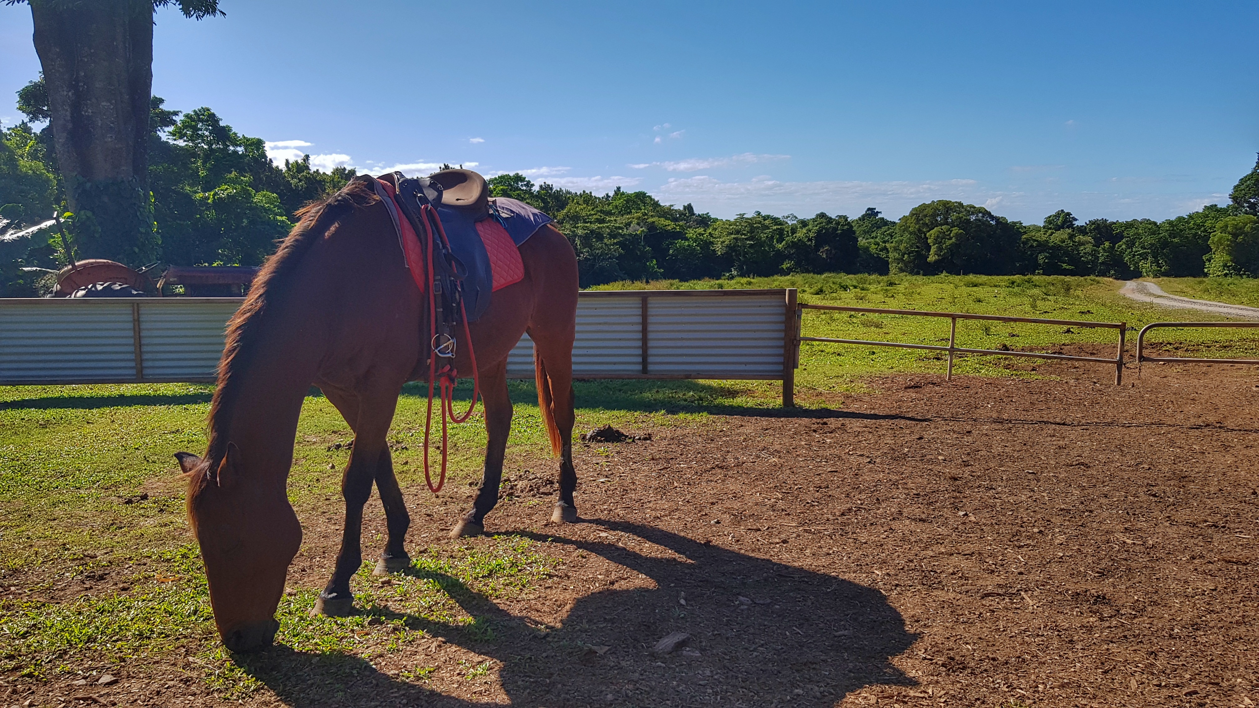 ได้ไปทริปค้างคืนใน Rainforest ที่ Cape tribulation กับเพื่อนๆมาคะ เพราะช่วงเช้าจนถึงบ่ายต้องรอรถเข้ามารับที่บังกะโล รู้สึกต้องหาอะไรทำสักอย่างเลยไปขอคำแนะนำกับพนักงานที่พักว่าจะอยู่ถึงบ่ายโมง มีกิจกรรมอะไรที่สามารถทำได้บ้าง? เค้าก็แนะนำลองไปขี่ม้าสิ ใช้เวลาโดยรวม 2 ชม.นะ ลองไปดูมันดีมากๆ นี้เลยลองซื้อทัวร์ Cape trib horse rides ในราคา 110$ ก็รู้สึกว่าราคาแพงเอาการอยู่ แต่เคยเช่าขี่ม้ามาก่อนใช้เวลาไม่นานเท่านี้เลย ตั้ง 90 นาทีก็เลยโอเค ลองดูม้าออสเตรเลีย ก็ไม่รู้สึกผิดหวังเลย เต็มอิ่มบนหลังมาตลอดการเดินทาง และก็สามารถบังคับม้าเองได้ด้วยเพราะทุกทีจะมีคนจูงและก็นั่งเฉยๆ คือดีต่อใจ พนักงานก็บอกให้ออกมารอเวลา 7:30 นะ รถจะมารับ 8:00 ที่ให้มาก่อนเพราะต้องเช็คเอาท์ก่อน 10:00 โมงเช้า